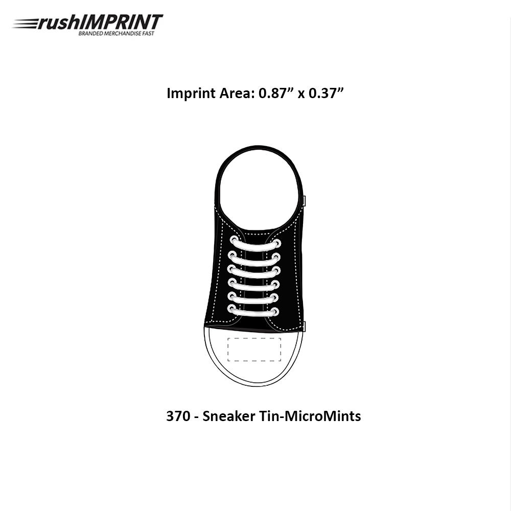 Put your best foot forward with our Sneaker Tin filled with MicroMints. With so many application, this miniature shoe is the perfect fit for youth programs charity walks or any promotional message. Here a few to inspire you... To show level of service: we walk in your shoes. Training message: keeping you on your toes. Fitness and wellness programs: a step in the right direction. Toe and shoe opening can be imprinted. Non melt product. Dimensions: 4" W x 5/8" H x 1" D. Mint tins are recyclable and and shrink wrapped for your safety. Sugar free mints made fresh in our facility. Price includes one color two locations.
