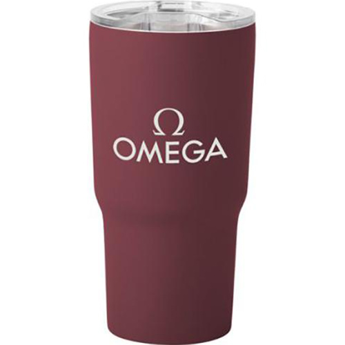 Soft touch 20 oz double wall stainless steel vacuum tumbler with lid. Keeps drinks hot or cold for up to 8 hours. Price includes one color, one location imprint.