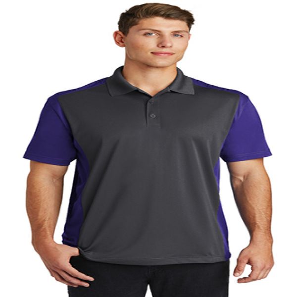 Modern colorblocking and snag resistance give this moisture-wicking polo instant impact. 3.8-ounce, 100% polyester tricot. Tag-free label. Taped neck. Colorblocking at shoulders, sleeves and sides. Flat knit collar. 3-button placket with dyed-to-match rubber buttons. Set-in, open hem sleeves. Your price includes embroidery on the left chest.