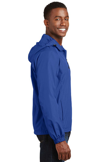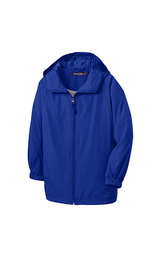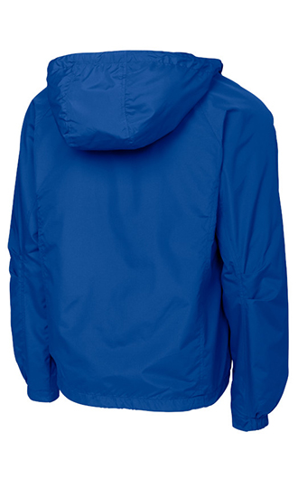 A hit on or off the field, this water-repellent jacket is comfortable, stylish and quiet. Available for adults and youth, this favorite has a sporty hood and raglan sleeves. It also offers an unrestrictive fit and provide lightweight weather protection. 100% polyester shell. 100% polyester jersey lining with mesh insets at gussets for added breathability. Tag-free label. Three-panel hood with drawcord and toggles. Front slash pockets. Articulated elbows for greater mobility. Half elastic, half self-fabric cuffs for comfort. Drawcord hem with toggle. Port Pocket at left chest for easy embroidery access. Please note: This product is transitioning from woven labels to tag-free labels. Your order may contain a combination of both labels. Your price includes embroidery on the left chest.