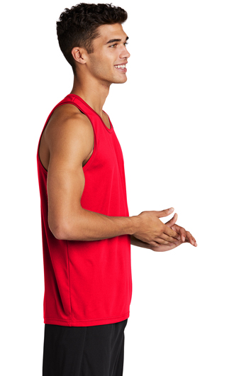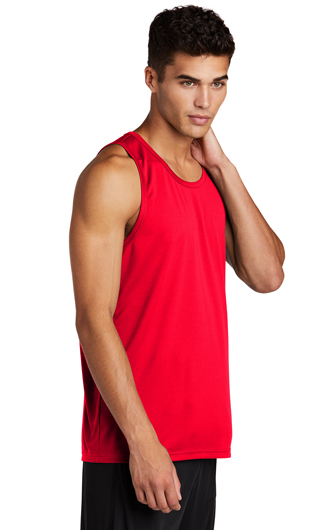 Lightweight and highly breathable, this moisture-wicking, value-priced tank features PosiCharge technology to lock in color and prevent logos from fading. 3.8-ounce, 100% polyester interlock with PosiCharge technology. Removable tag for comfort and relabeling. Binding at neck and armholes. Price includes a one color imprint on left chest.