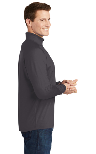 An extremely flexible layer with a soft-brushed backing and moisture control for year-round comfort. 6.8-ounce, 90/10 poly/spandex jersey. Tag-free label. Smooth-faced. Chin guard for additional comfort. Cadet collar. Taped neck. Raglan sleeves. Open cuffs and hem. Your price includes embroidery on the left chest.