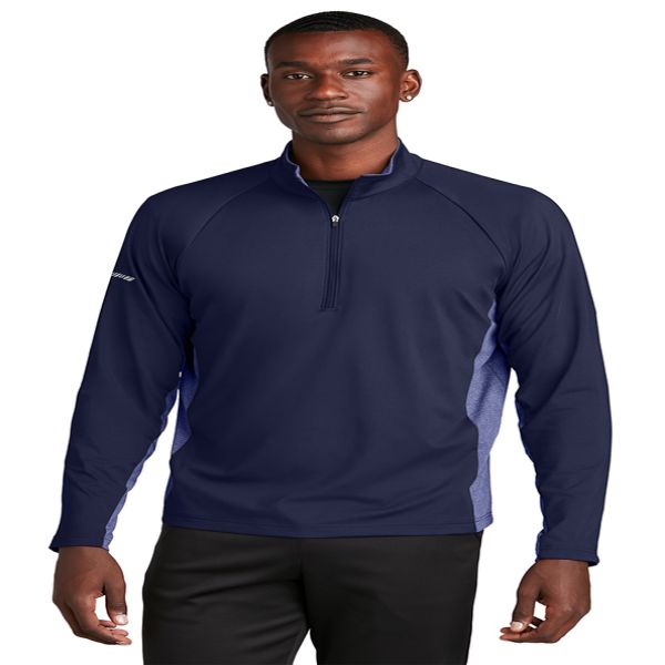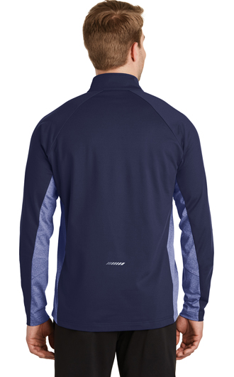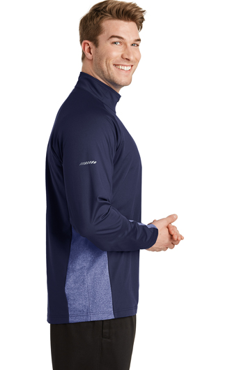 By mixing heather with a solid color and adding reflective hits, this moisture-wicking pullover has a technical look plus plenty of stretch for easy movement. 6.8-ounce, 90/10 poly/spandex jersey. Soft-brushed backing. Tag-free label. Reflective details on right sleeve and lower back. Cadet collar. Reverse coil zipper. Raglan sleeves. Open cuffs and hem. Price includes embroidery up to 5k stitches.