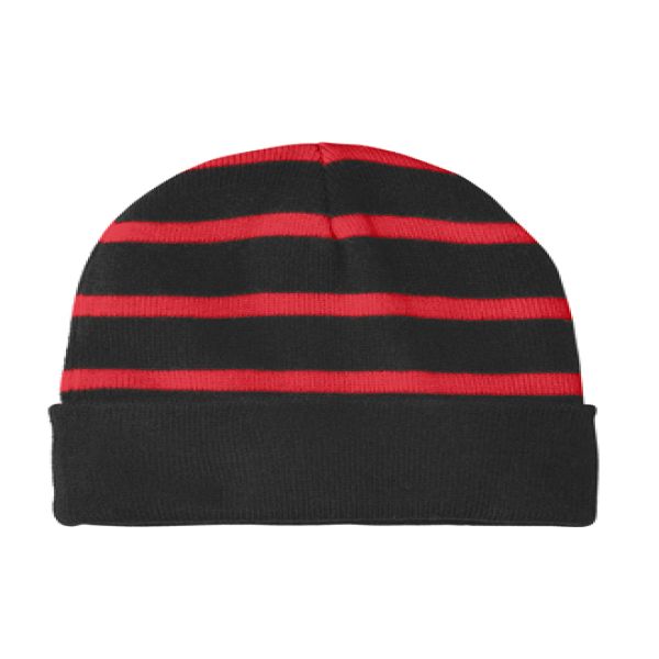 This fully lined beanie keeps the chill at bay and coordinates with our Striped Arm Socks (STA03) sold separately. 100% acrylic. 89/9/2 acrylic/poly/metallic (Sport Blue/Silver, Team Navy/Silver). 100% polyester fleece lining. All colors have black fleece lining except True Royal, Maroon, Purple, Deep. Orange and Sport Blue which have grey fleece lining.
