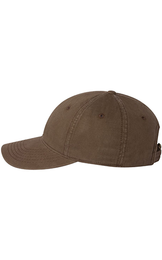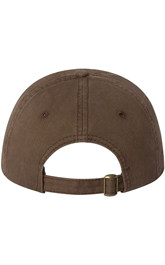 100% peach washed cotton. Unstructured, six-panel, low-profile. Pre-curved visor. Navy undervisor . Sewn eyelets. Self-fabric tri-glide buckle closure.