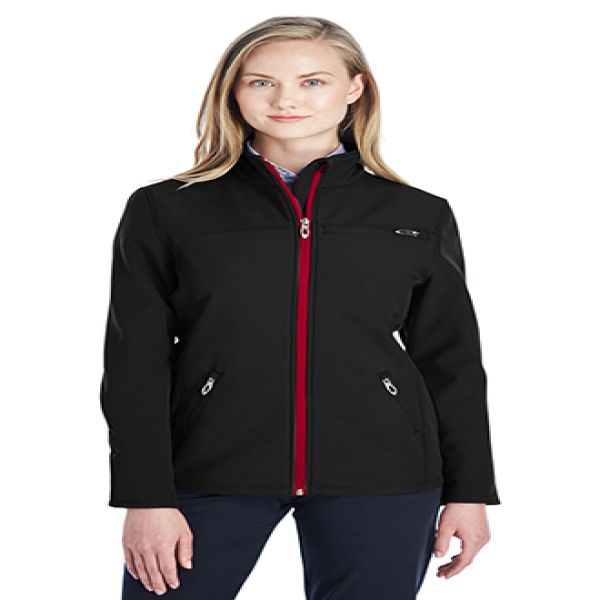 Fabric: 94% polyester / 6% spandex softshell fabric. 3-layer fabric with X T.L laminate. Micro-brushed tricot chin and inner trim accents. Features: Classic fit. Reverse coil center front zipper. Zippered handwarmer pockets. Zippered chest pocket. Asymmetrical seam accents. Your price includes embroidery on the left chest.