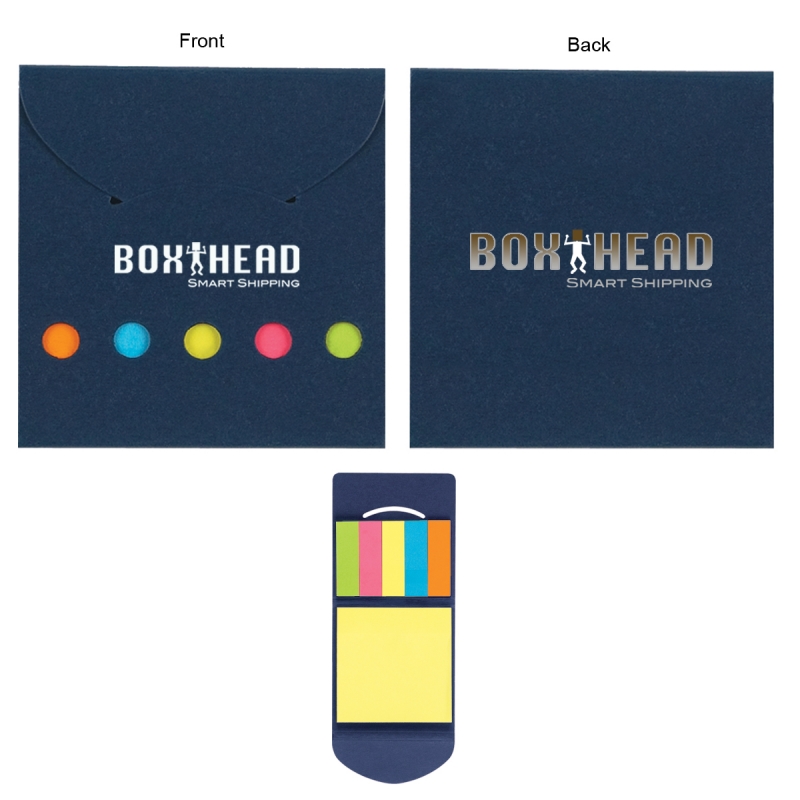 5 Sticky Flags in Neon Colors. Sticky Notes. Tuck in Closure. Compact Case. Price includes one color imprint, one location.
