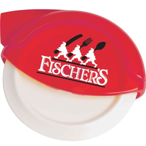 Supremely handy in the kitchen! Easily slices pizzas, quesadillas, brownies and more. Contoured blade spreads apart cheese as it slices. Crust cutter allows it to cut thick crust and in hard to reach spots in the box. Ideal for pizzerias, food shows and company pizza parties. Top rack dishwasher safe. Features easy-to-use crust cutter. Price includes one color imprint, one location.