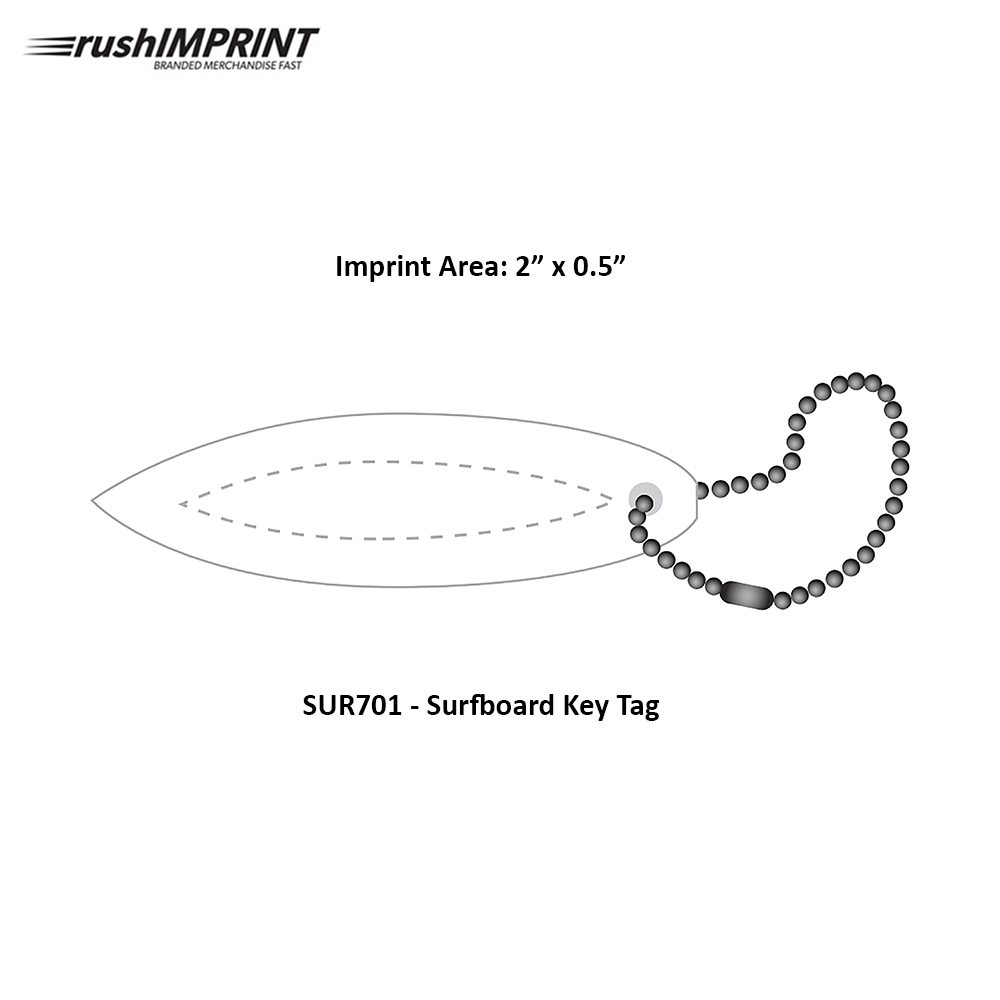 Catalog Year 2025. Surfboard Key Tag. FOB: Maine 04619. Price includes full color imprint on one side. 2nd side print with additional charges. See Product Options. This solid, non-coated, 2D EVA foam giveaway is a great promotion to target boaters, hotels and resorts, swimming pools and beach-themed events. Price includes one color, one location imprint.