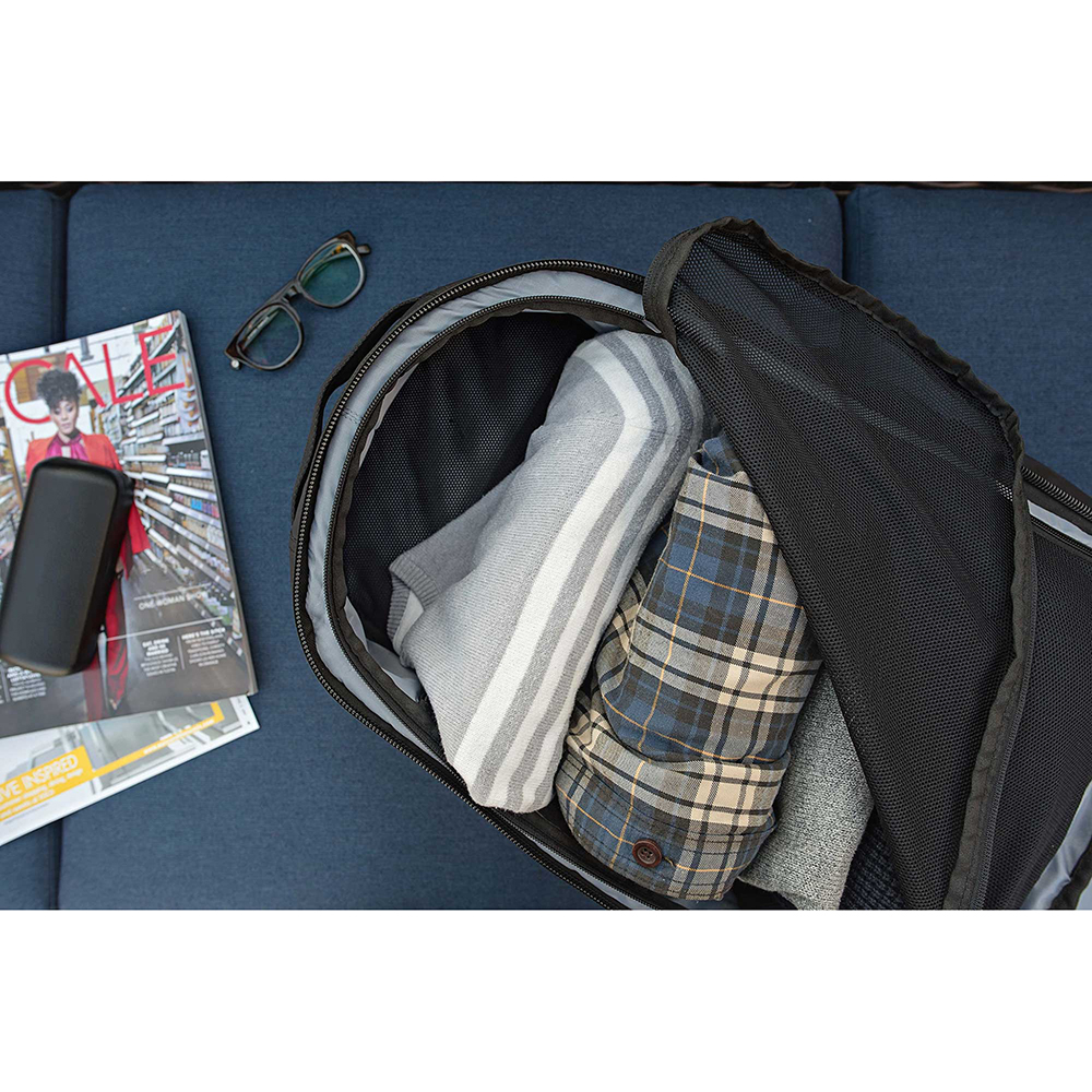 Daydreaming about that perfect three-day getaway? The multi-functional Tahoe pack has got you covered! With the capability to fully open like a piece of luggage, your clothes, books, and travel items will fit perfectly inside. No need to air out your dirty laundry—stash it in the separate waterproof bottom compartment. Designed to simplify your life on the go, the Tahoe contains 18 pockets, including a large stash pocket for secret or important items, padded and felt-lined sunglasses pouch, and a full-open organizer section. Is comfort a concern? Adjustable and padded shoulder straps with load stabilizers, sternum strap, and a memory foam back panel helps you distribute weight and take a load off. Side access sleeve fits most 15” laptopsFully zippered main compartment allows bag to open flat for full access. Felt-lined sunglasses pocket. Padded and adjustable shoulder straps with load stabilizers. Ergonomic back panel with memory foam. Dual zip water bottle/accessory pockets. Luggage pass-through with zippered stash pocket. Made from durable, water-repellent 600d. polyester. Price includes laser engraving.