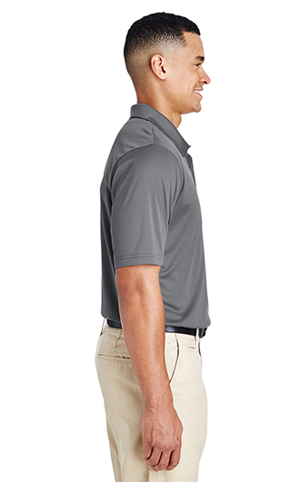 3.5 oz./yd2 / 130 gsm, 100% polyester interlock with moisture-wicking and uv pro. Features: Dyed-to-match buttons. Team fit. Tear away main label. Three-button placket. Cationic dyes for superior brightness and excellent colorfastness. Your price includes embroidery on the left chest.