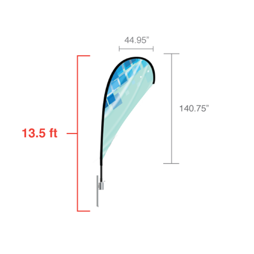 The Teardrop Flag is suitable for indoor and outdoor events. Effectively advertise your logo or message with our x-large teardrop flag. Available hardware options including a heavy duty cross base or ground stake to fit to your pole set. Features: 4 oz. Polyester flag material. High resolution digitally printed at 720 x 720. Dye sublimation. Scratch resistant. Washable. Price includes full color imprint.