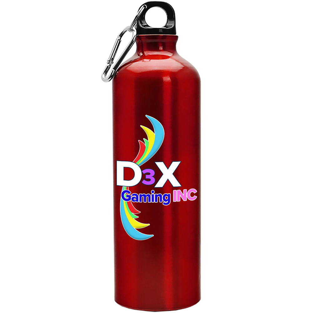 25 oz Aluminum Sports Bottle With Carabiner. Imprinted in Full Color. Light And Durable - Perfect For Any Promotion. Clips to Backpack And More! For Easy Carrying. Stay Hydrated on Active Days! Great For Outdoor Activities Like Hiking, Camping, And Retreats. Extra Large 25 oz. Capacity. Spill-Resistant Screw-On Lid with Gasket Seal. BPA-Free / FDA Compliant. Hand Wash Only
