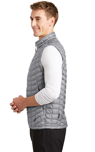 Streamlined ThermoBall powered by PrimaLoft baffles are contoured to fit your body and maintain core warmth during winter excursions in cold, wet weather. Wear this thermal vest as a mid-layer for added warmth in the coldest winter days or pack it for emergency layering in the backcountry. 15D 33 g/m2 100% nylon with durable water-repellent (DWR) finish. 11.5 g/ft2 PrimaLoft ThermoBall synthetic insulation. Secure-zip hand pockets. Stows in left hand pocket. Hem cinch-cord. Contrast embroidered The North Face logo on left hem and right back shoulder. BENEFITS. DURABLE WATER-REPELLENT: DWR is applied to the face of the fabric to provide the first line of defense against wet weather.. INSULATED: Insulation traps hot air for reduced heat loss and increased warmth. PACKABLE/STOWABLE: Highly compressible layer for emergency use or travel. SYNTHETIC: Designed to replicate the qualities of down, but retain them even when wet. Your price includes embroidery on the left chest.