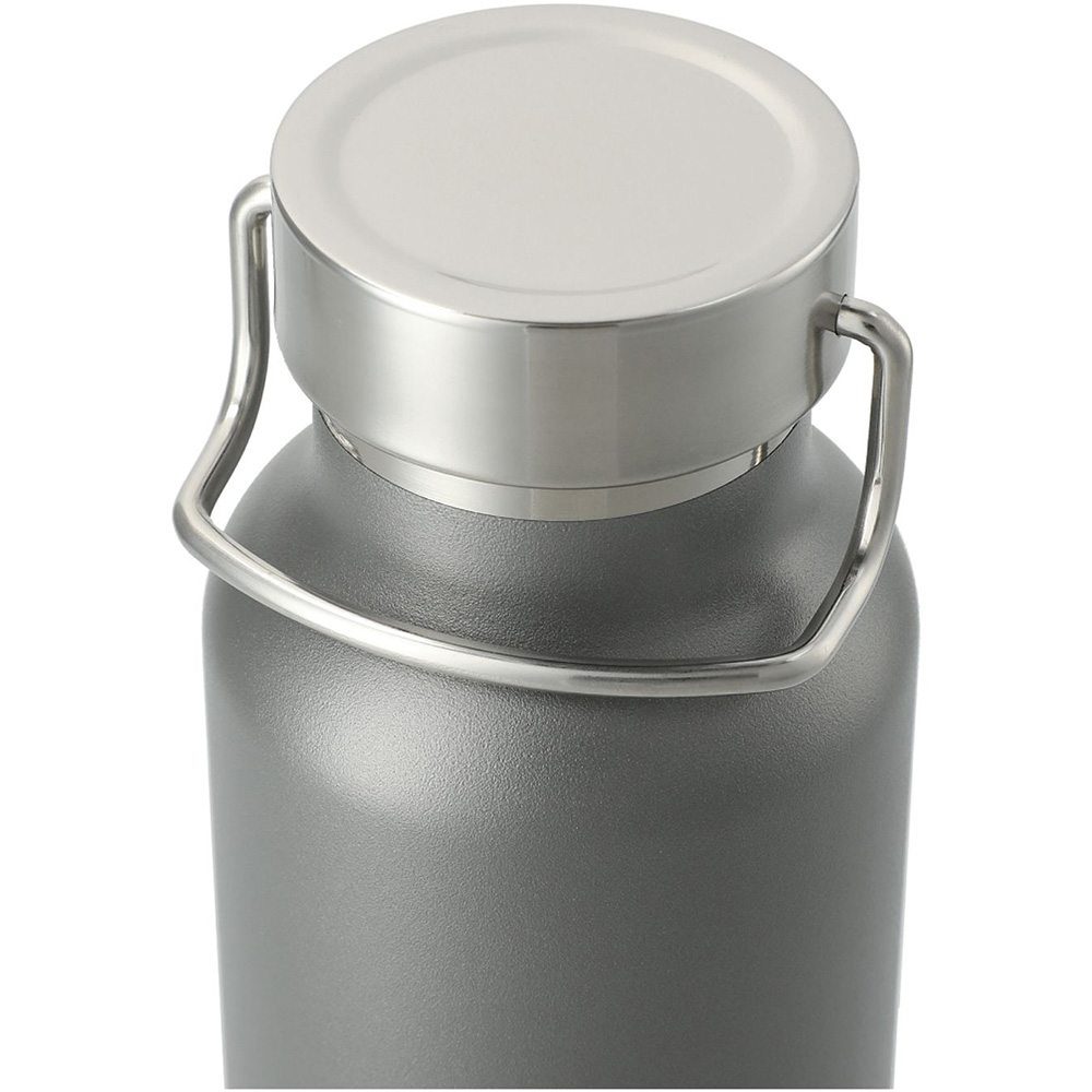 The durable Thor Copper Vacuum Insulated Bottle 22oz features double-wall stainless steel vacuum construction and copper insulation to keep beverages hot for 12 hours, or cold for up to 48 hours. The powder-coated exterior is condensation-resistant and features a sturdy steel hand loop for easy transportation. The Thor Copper Vacuum Insulated Bottle 22oz comes with a spill-resistant lid that screws on securely. 18/8 grade stainless steel. Spill-resistant lid. Durable metal hand loop. Wide opening for easy pouring. Perfect for ice cubes. Fits most standard car cup holders.