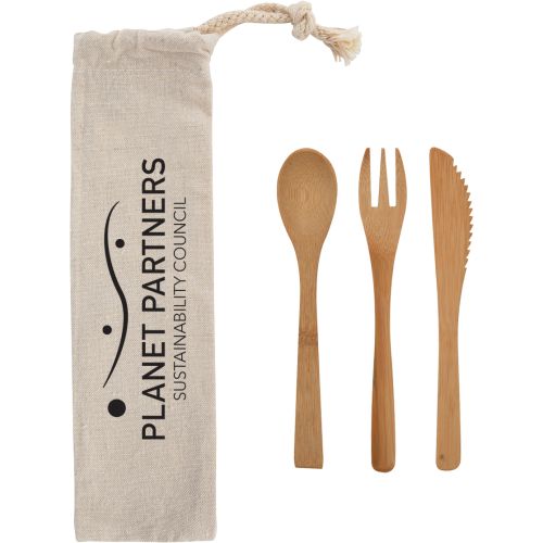 Three Piece Bamboo Utensil Sets in Travel Pouches