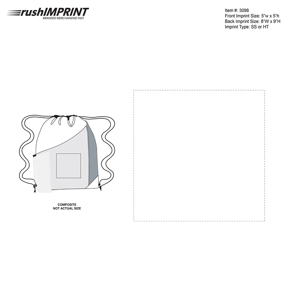 Made Of 210D Polyester. Large Front Pocket. Side Mesh Pocket. Drawstring Closure. Spot Clean/Air Dry.