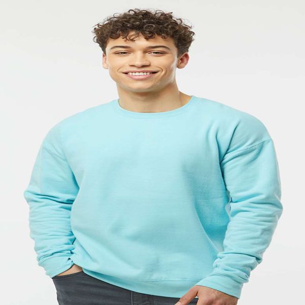 7.5 oz./yd2, 80/20 ring-spun cotton/polyester, 24 singles. Heather Grey is 75/25 ring-spun cotton/polyester. Forest, other Heathers, Light Pink, Maroon, Military Green, and Purple are 50/50 ring-spun cotton/polyester. Solid colors are 100% cotton face. Reactive-dyed for longer lasting color. Drop shoulder. Side seams. Ribbed neckline, cuffs and waistband with 5% spandex. Tear away label. USMCA certified.