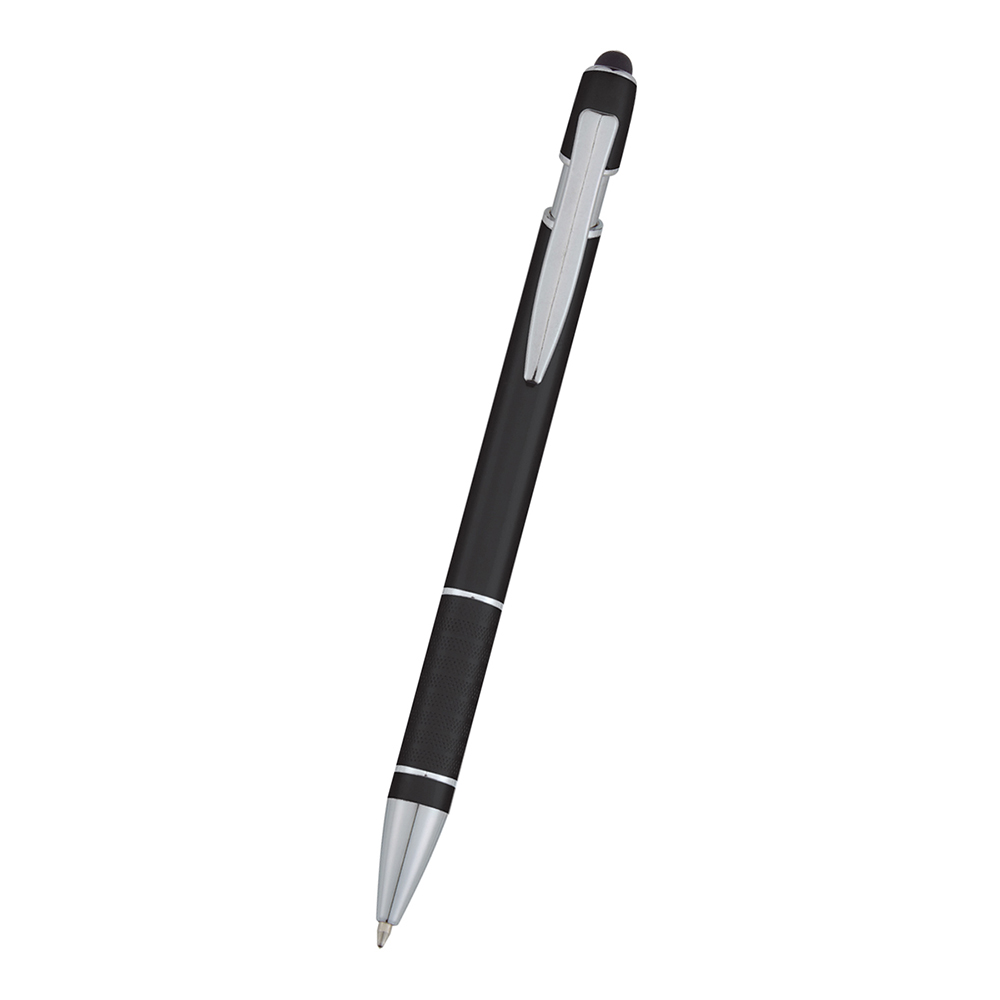 Plunger Action. Aluminum Pen. Stylus On Top. Unique Grip Design. Price includes one color, one location imprint.