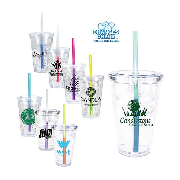 Durable acrylic clear tumbler. Double-Wall insulated. Includes lid and unimprinted heavy duty mood straw. Not intended for hot beverages. Do not microwave. Hand wash only. Tumbler Color: Clear. Price includes one color imprint, one location.