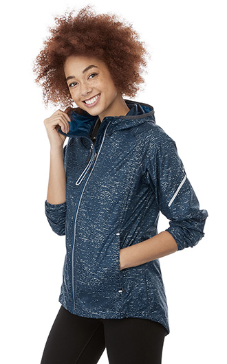 The featherweight Signal Packable Jacket is fully reflective for visibility from dusk to dawn – plus you can pack it away in a built-in waist pack. Along with its reflective graphic pattern and detail, the Signal Jacket features a water resistant coating and water repellent finish, hood with elasticized opening and elastic cord lock at the hem. Inside, its got a media-phone and cord port. Price includes one color, one location imprint.