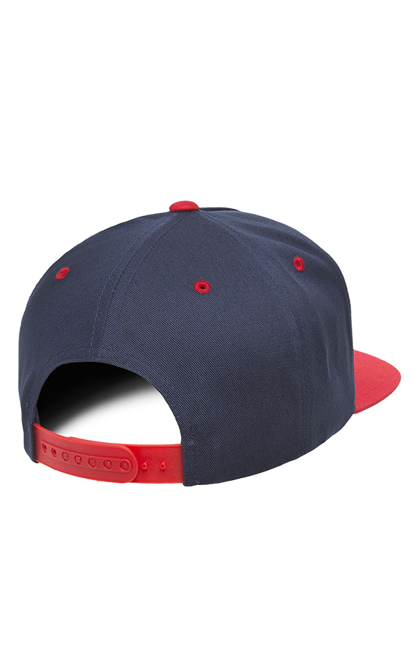 Material: 100% cotton. Feature: 5-panel, structured, high-profile. Eight-row stitching on flat visor. 3 3/4" crown. Hard buckram backed front panels. Four sewn eyelets. Green undervisor. Plastic adjustable closure.