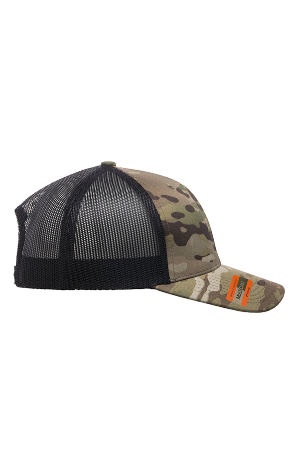 Material: 71% cotton, 28% nylon, 1% polyurethane. Feature: Official licensed MULTICAM pattern. Pattern is the proven multi-environment concealment solution. Black plastic snap closure. Hard buckram. Black undervisor. OSFA.