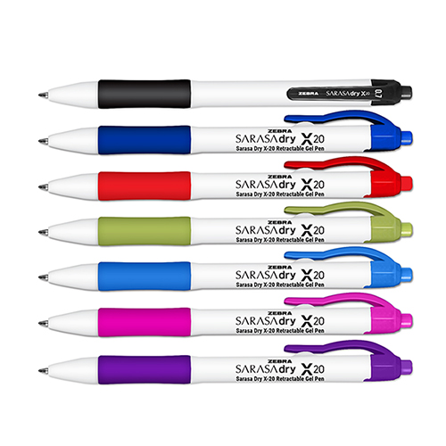 Get a smooth, comfortable writing experience with Zebra's Sarasa Dry X-20-WH Retractable Gel Pen With White barrel & Rubber Grip. These retractable gel pens have a 0.7mm point that delivers crystal clear lines and sharp precision and the smooth-flowing ink dries quickly to prevent bleeding. Price includes one color, one location imprint.