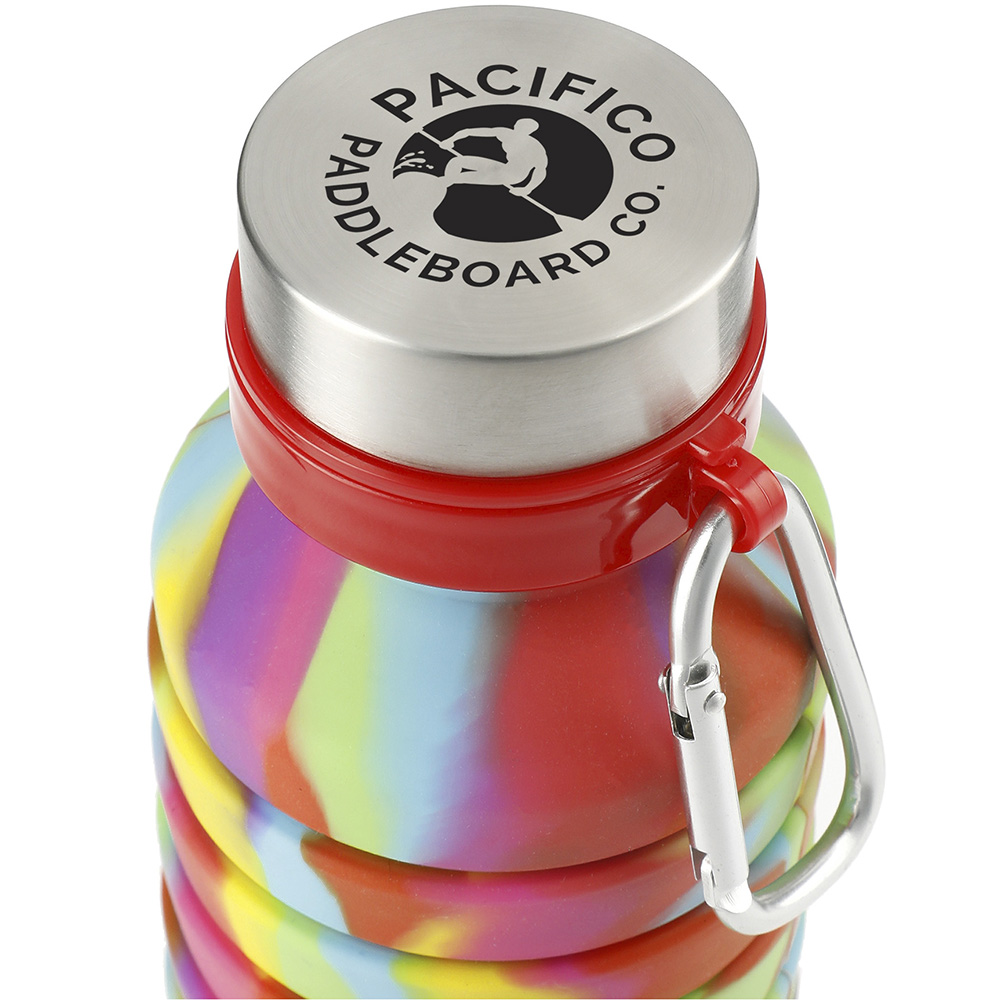 The special Zigoo Bottle features on-trend tie-dye look. And the collapsible and lightweight design helps you save 50% space. It's portable and easy to store. It reserves 18oz liquid with only 198g in weight and it can collapse from 9.2inch to 5.45 inch in height. Bottle is made from food grade silicone including a stainless steel lid with carabiner attached. It is leak proof and is great for all types of activities and sports. Only the bottle (not lid) is dishwasher safe for easy cleaning and is designed with a wide mouth opening for filling ice cubes. Includes matching carabiner. BPA Free. 18oz. Due to the nature of the unique tie-dye technique, bottles will be similar, but not identical. Dye variation is natural part of the process and is no way construed as a defective product. Material: Silicone.